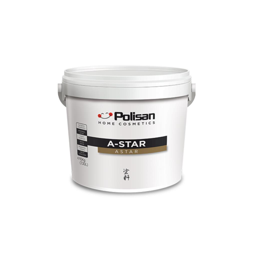 Polisan A-Star Astar 10 KGİç ve dış cepheler için geliştirilmiş, akrilik reçine esaslı, alkali dayanımı yüksek, su bazlı, çevreye duyarlı bir astardır. Özel formülü sayesinde, yüzeye mükemmel nüfuz ederek, yüzeyin eşit bir şekilde doldurulmasını sağlar ve son kat boya tüketimini %15-20 oranında azaltır. İç ve dış cephelerde, yeni kürlenmiş beton, sıva, alçı levha gibi yüzeylerde kullanımı uygundur.